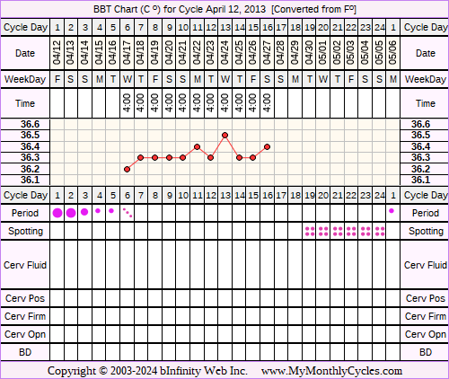 Disclaimer: You are viewing a chart shared by a MyMonthlyCycles member. All data on this chart, including ovulation date, if shown, has been entered by this member. MyMonthlyCycles has not interpreted this chart.