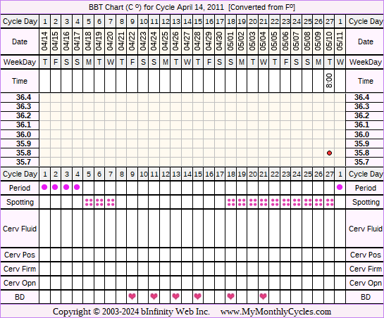 Disclaimer: You are viewing a chart shared by a MyMonthlyCycles member. All data on this chart, including ovulation date, if shown, has been entered by this member. MyMonthlyCycles has not interpreted this chart.