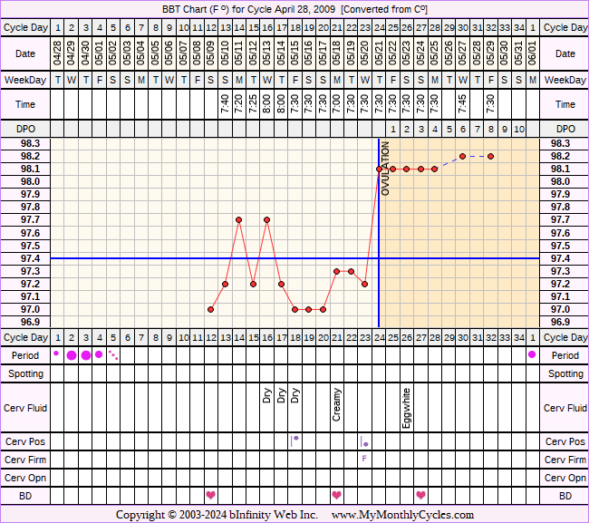 Disclaimer: You are viewing a chart shared by a MyMonthlyCycles member. All data on this chart, including ovulation date, if shown, has been entered by this member. MyMonthlyCycles has not interpreted this chart.