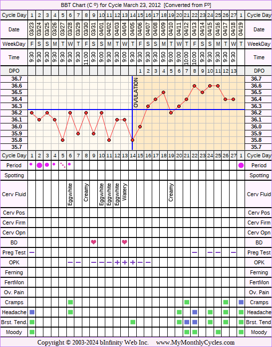 Disclaimer: You are viewing a chart shared by a MyMonthlyCycles member. All data on this chart, including ovulation date, if shown, has been entered by this member. MyMonthlyCycles has not interpreted this chart.