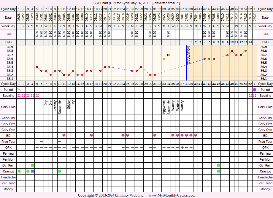 Disclaimer: You are viewing a chart shared by a MyMonthlyCycles member. All data on this chart, including ovulation date, if shown, has been entered by this member. MyMonthlyCycles has not interpreted this chart.