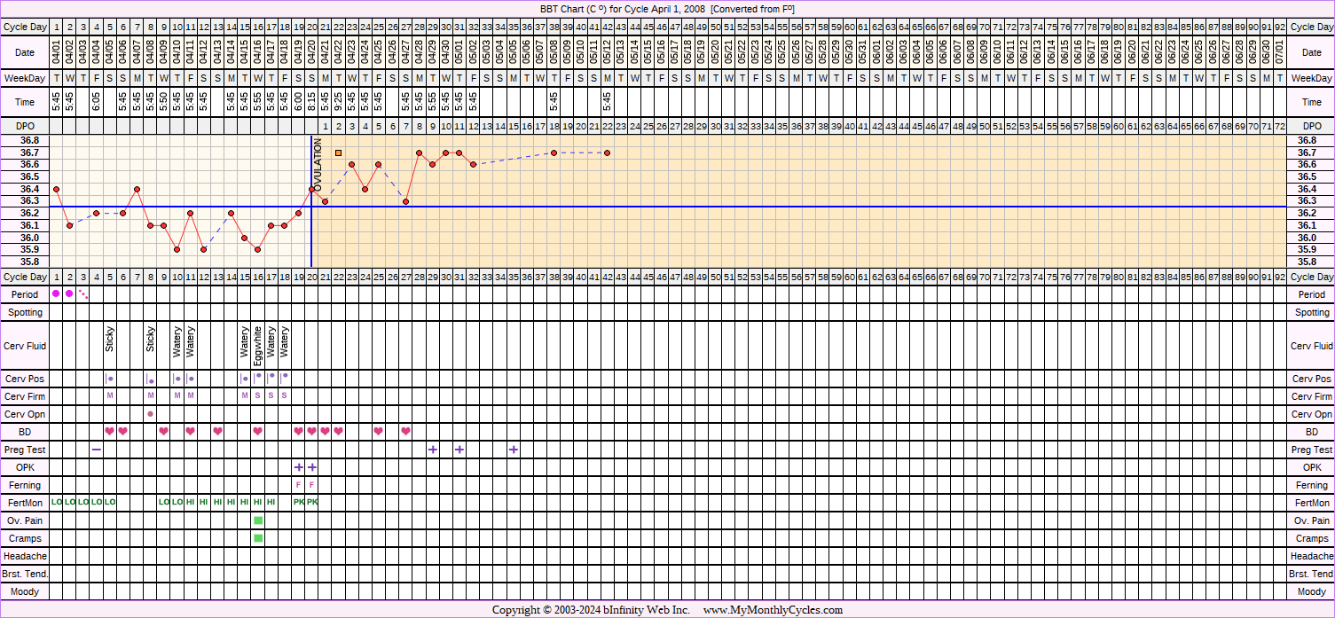 Disclaimer: You are viewing a chart shared by a MyMonthlyCycles member. All data on this chart, including ovulation date, if shown, has been entered by this member. MyMonthlyCycles has not interpreted this chart.