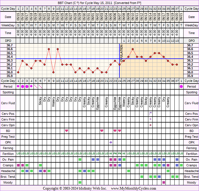 Disclaimer: You are viewing a chart shared by a MyMonthlyCycles member. All data on this chart, including ovulation date, if shown, has been entered by this member. MyMonthlyCycles has not interpreted this chart.