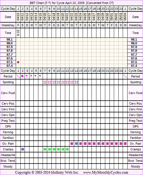 Disclaimer: You are viewing a chart shared by a MyMonthlyCycles member. All data on this chart, including ovulation date, if shown, has been entered by this member. MyMonthlyCycles has not interpreted this chart.