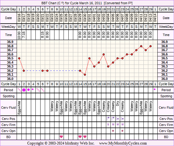 Disclaimer: You are viewing a chart shared by a MyMonthlyCycles member. All data on this chart, including ovulation date, if shown, has been entered by this member. MyMonthlyCycles has not interpreted this chart.
