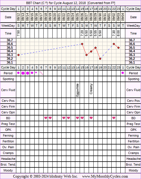 Disclaimer: You are viewing a chart shared by a MyMonthlyCycles member. All data on this chart, including ovulation date, if shown, has been entered by this member. MyMonthlyCycles has not interpreted this chart.