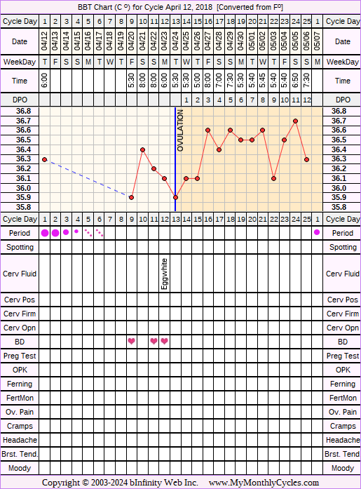 Disclaimer: You are viewing a chart shared by a MyMonthlyCycles member. All data on this chart, including ovulation date, if shown, has been entered by this member. MyMonthlyCycles has not interpreted this chart.