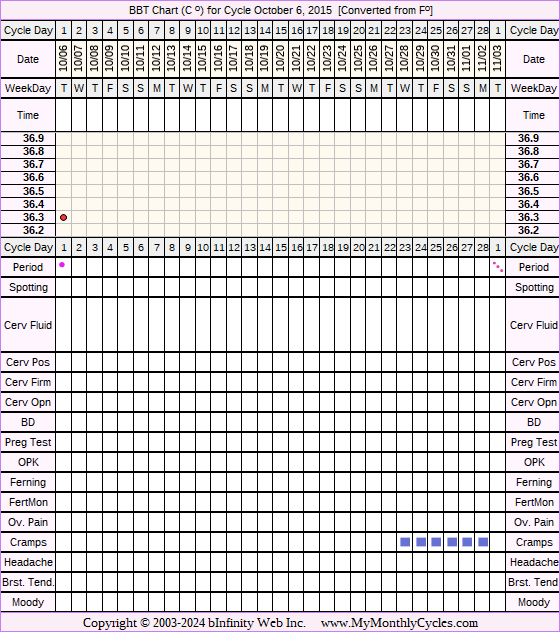Disclaimer: You are viewing a chart shared by a MyMonthlyCycles member. All data on this chart, including ovulation date, if shown, has been entered by this member. MyMonthlyCycles has not interpreted this chart.