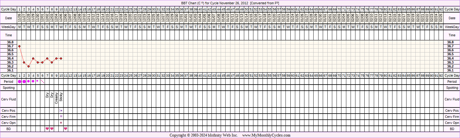 Disclaimer: You are viewing a chart shared by a MyMonthlyCycles member. All data on this chart, including ovulation date, if shown, has been entered by this member. MyMonthlyCycles has not interpreted this chart.