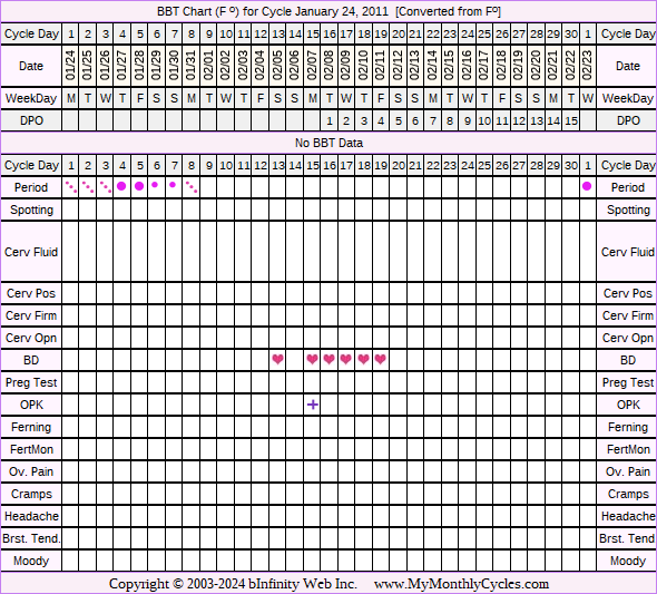 Disclaimer: You are viewing a chart shared by a MyMonthlyCycles member. All data on this chart, including ovulation date, if shown, has been entered by this member. MyMonthlyCycles has not interpreted this chart.