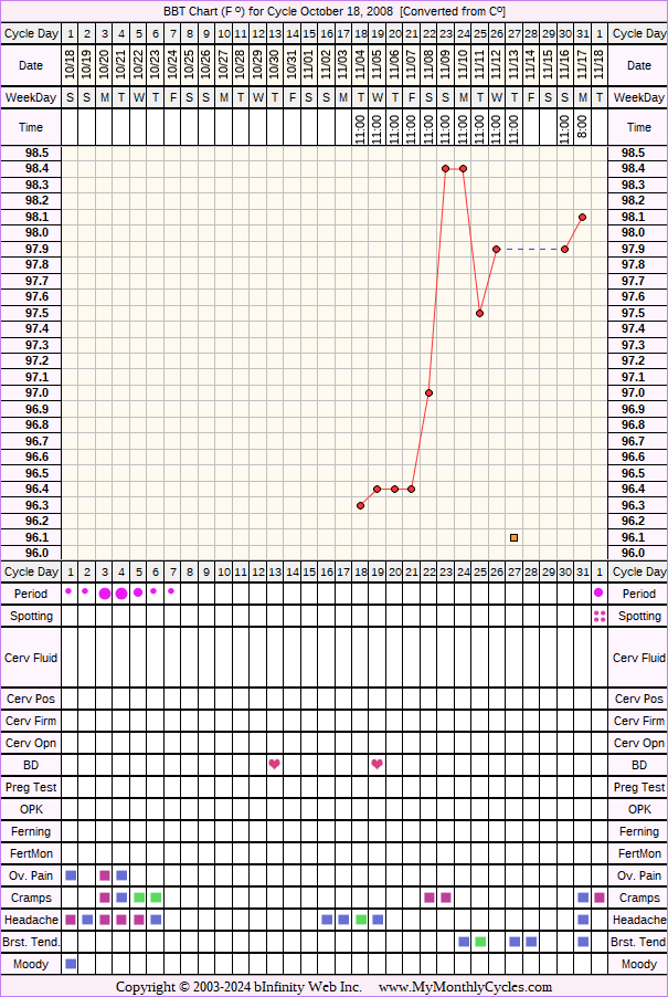 Disclaimer: You are viewing a chart shared by a MyMonthlyCycles member. All data on this chart, including ovulation date, if shown, has been entered by this member. MyMonthlyCycles has not interpreted this chart.