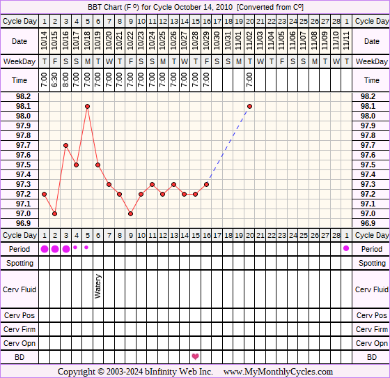 Disclaimer: You are viewing a chart shared by a MyMonthlyCycles member. All data on this chart, including ovulation date, if shown, has been entered by this member. MyMonthlyCycles has not interpreted this chart.