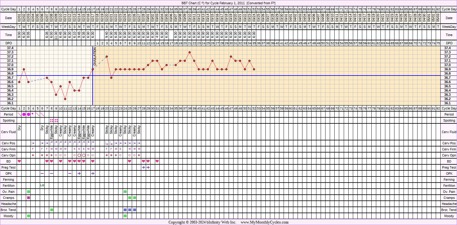 Disclaimer: You are viewing a chart shared by a MyMonthlyCycles member. All data on this chart, including ovulation date, if shown, has been entered by this member. MyMonthlyCycles has not interpreted this chart.