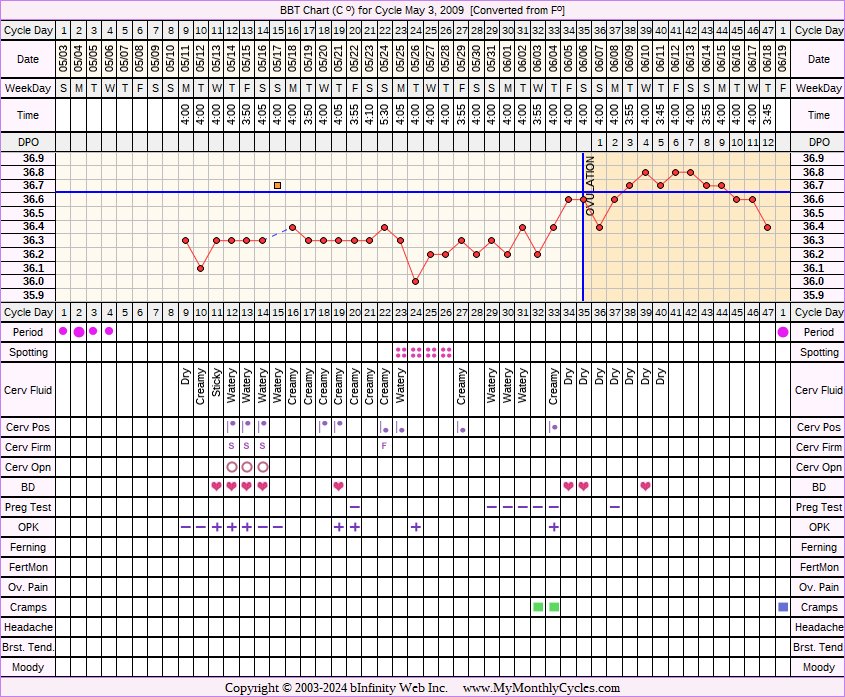 Disclaimer: You are viewing a chart shared by a MyMonthlyCycles member. All data on this chart, including ovulation date, if shown, has been entered by this member. MyMonthlyCycles has not interpreted this chart.