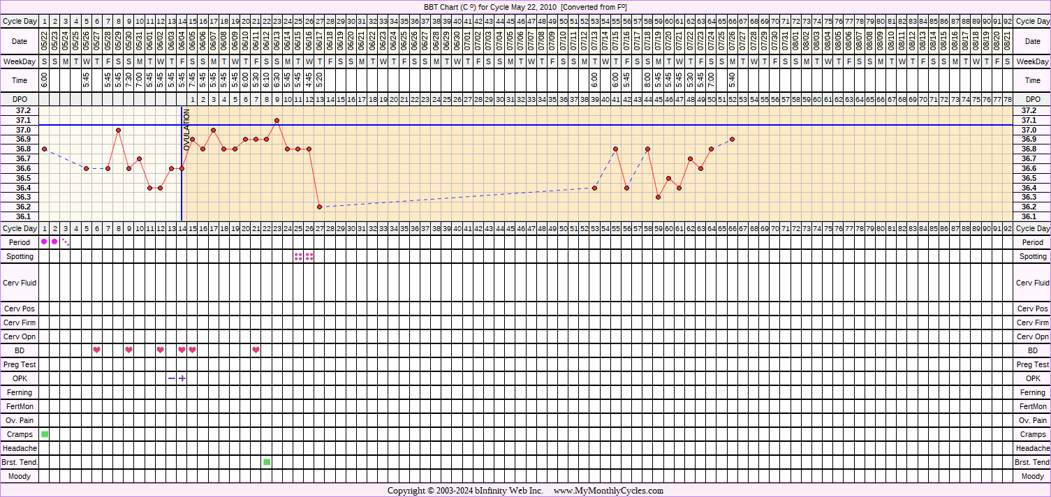 Disclaimer: You are viewing a chart shared by a MyMonthlyCycles member. All data on this chart, including ovulation date, if shown, has been entered by this member. MyMonthlyCycles has not interpreted this chart.
