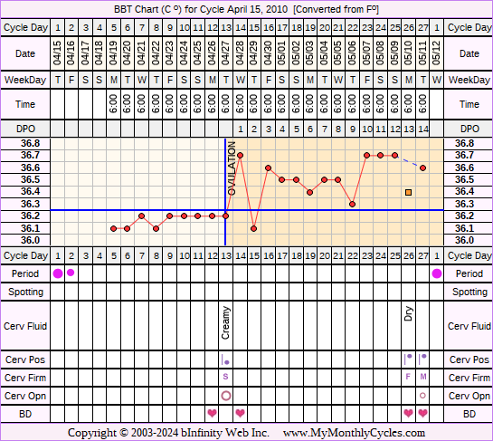 Disclaimer: You are viewing a chart shared by a MyMonthlyCycles member. All data on this chart, including ovulation date, if shown, has been entered by this member. MyMonthlyCycles has not interpreted this chart.