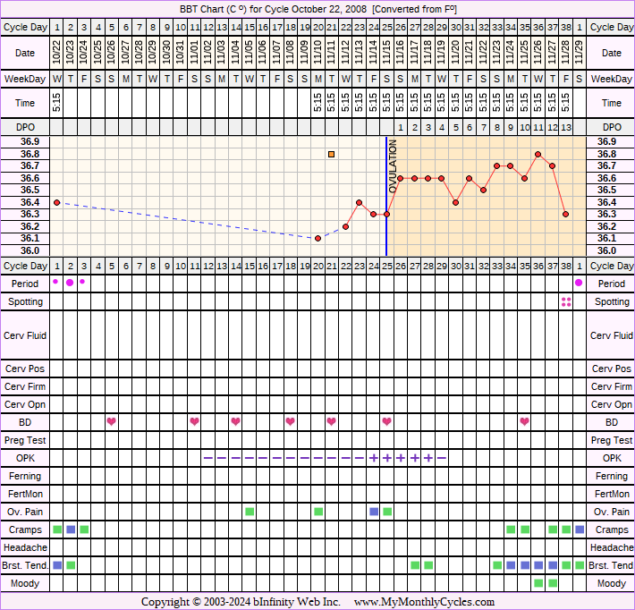 Disclaimer: You are viewing a chart shared by a MyMonthlyCycles member. All data on this chart, including ovulation date, if shown, has been entered by this member. MyMonthlyCycles has not interpreted this chart.
