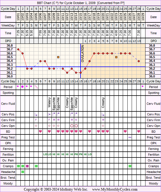 Member's BBT Chart for Oct 1, 2009