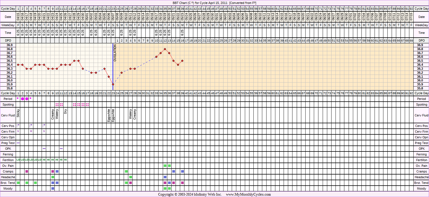 Disclaimer: You are viewing a chart shared by a MyMonthlyCycles member. All data on this chart, including ovulation date, if shown, has been entered by this member. MyMonthlyCycles has not interpreted this chart.