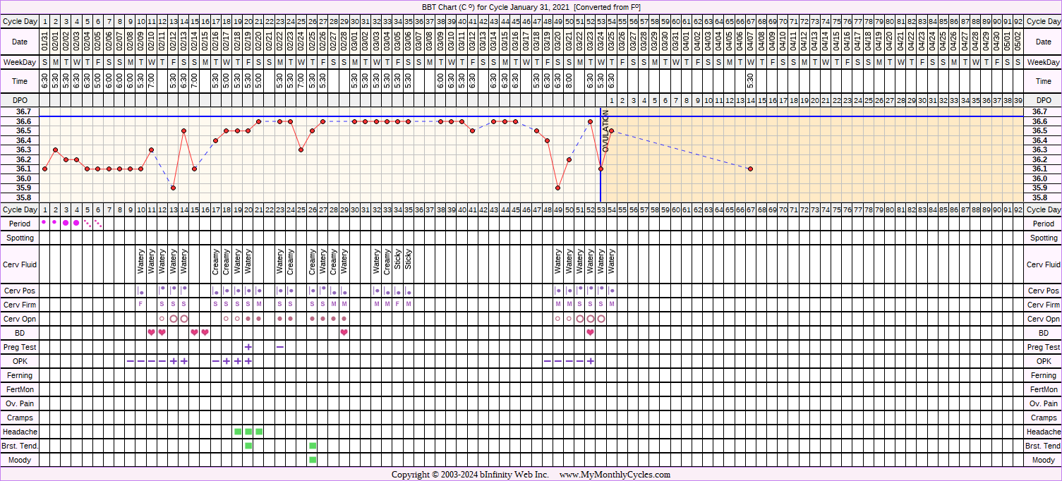 Disclaimer: You are viewing a chart shared by a MyMonthlyCycles member. All data on this chart, including ovulation date, if shown, has been entered by this member. MyMonthlyCycles has not interpreted this chart.