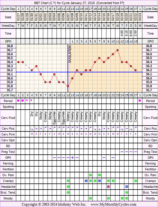 Disclaimer: You are viewing a chart shared by a MyMonthlyCycles member. All data on this chart, including ovulation date, if shown, has been entered by this member. MyMonthlyCycles has not interpreted this chart.