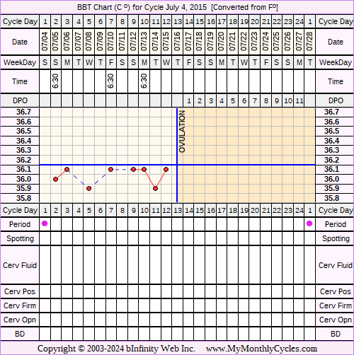 Disclaimer: You are viewing a chart shared by a MyMonthlyCycles member. All data on this chart, including ovulation date, if shown, has been entered by this member. MyMonthlyCycles has not interpreted this chart.
