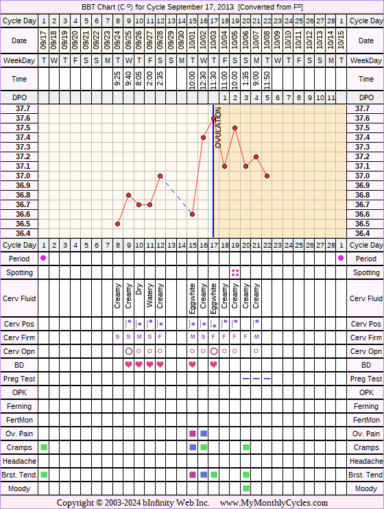 Disclaimer: You are viewing a chart shared by a MyMonthlyCycles member. All data on this chart, including ovulation date, if shown, has been entered by this member. MyMonthlyCycles has not interpreted this chart.
