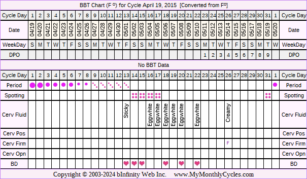 Disclaimer: You are viewing a chart shared by a MyMonthlyCycles member. All data on this chart, including ovulation date, if shown, has been entered by this member. MyMonthlyCycles has not interpreted this chart.