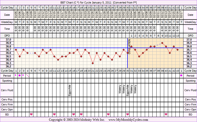 Disclaimer: You are viewing a chart shared by a MyMonthlyCycles member. All data on this chart, including ovulation date, if shown, has been entered by this member. MyMonthlyCycles has not interpreted this chart.