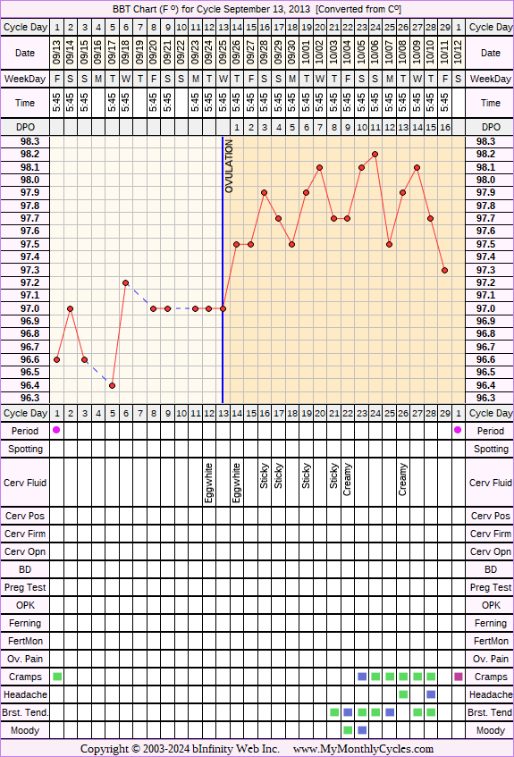 Disclaimer: You are viewing a chart shared by a MyMonthlyCycles member. All data on this chart, including ovulation date, if shown, has been entered by this member. MyMonthlyCycles has not interpreted this chart.
