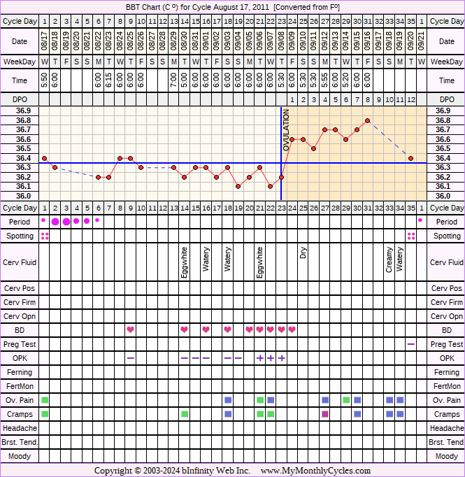 Disclaimer: You are viewing a chart shared by a MyMonthlyCycles member. All data on this chart, including ovulation date, if shown, has been entered by this member. MyMonthlyCycles has not interpreted this chart.