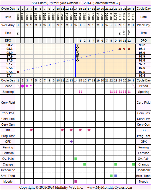 Disclaimer: You are viewing a chart shared by a MyMonthlyCycles member. All data on this chart, including ovulation date, if shown, has been entered by this member. MyMonthlyCycles has not interpreted this chart.