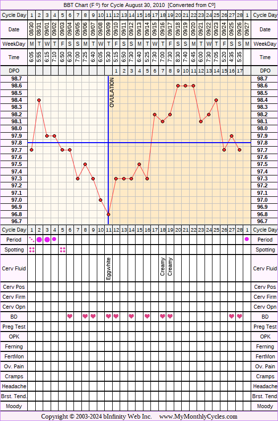 Member's BBT Chart for Aug 30, 2010
