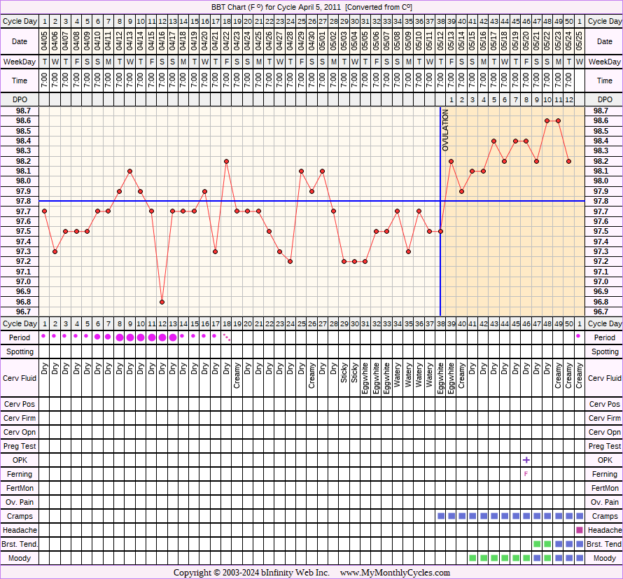 Disclaimer: You are viewing a chart shared by a MyMonthlyCycles member. All data on this chart, including ovulation date, if shown, has been entered by this member. MyMonthlyCycles has not interpreted this chart.
