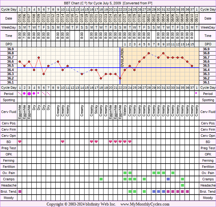 Member's BBT Chart for Jul 5, 2009
