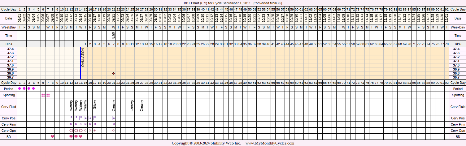 Disclaimer: You are viewing a chart shared by a MyMonthlyCycles member. All data on this chart, including ovulation date, if shown, has been entered by this member. MyMonthlyCycles has not interpreted this chart.
