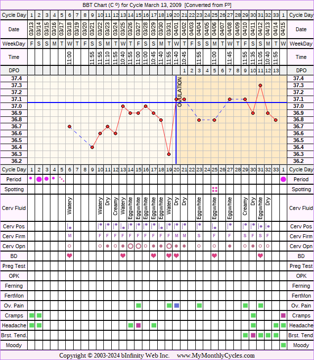 Disclaimer: You are viewing a chart shared by a MyMonthlyCycles member. All data on this chart, including ovulation date, if shown, has been entered by this member. MyMonthlyCycles has not interpreted this chart.