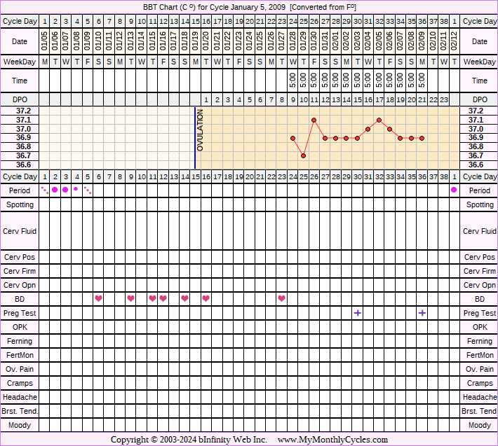 Member's BBT Chart for Jan 5, 2009