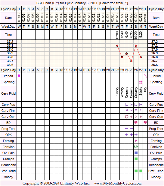 Disclaimer: You are viewing a chart shared by a MyMonthlyCycles member. All data on this chart, including ovulation date, if shown, has been entered by this member. MyMonthlyCycles has not interpreted this chart.