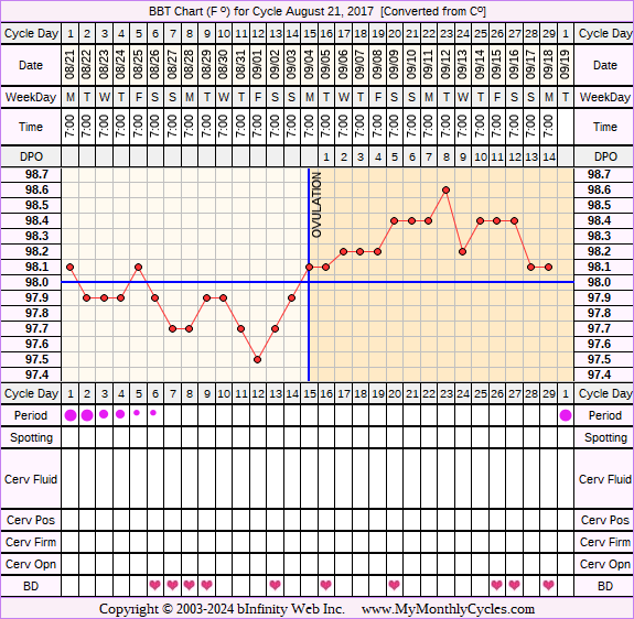 Disclaimer: You are viewing a chart shared by a MyMonthlyCycles member. All data on this chart, including ovulation date, if shown, has been entered by this member. MyMonthlyCycles has not interpreted this chart.
